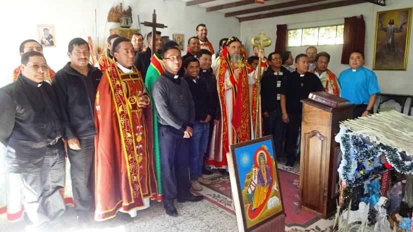 Después de saludar a los hermanos, celebró la Divina Liturgia con los hermanos que estaban presentes.