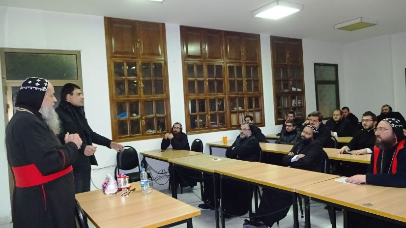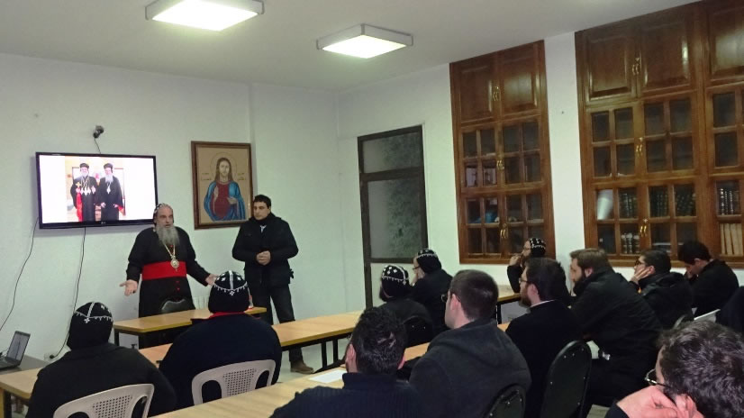Durante dos horas, el arzobispo hizo la presentación ante el Rector, el Secretario para las Relaciones con la Iglesia Malankara, los monjes formadores del Seminario y los seminaristas, entre los que estaban los diáconos Juan Arcadio y Maxi Eliseo.