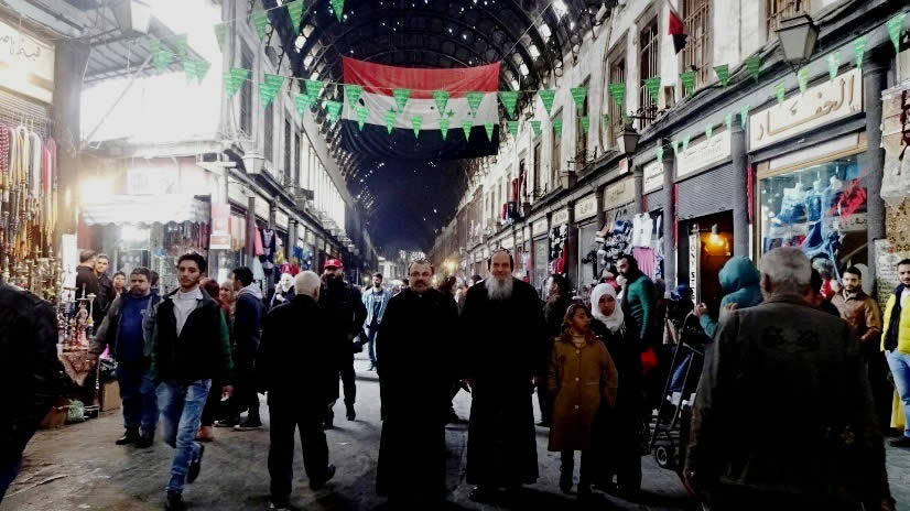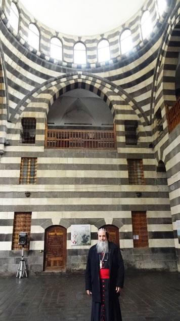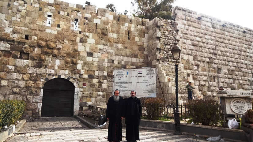 Una de las grandes características de la parte antigua de Damasco son sus calles estrechas y empedradas. La ciudad está amurallada y a la misma dan acceso diversas puertas o arcos. Mor Santiago Eduardo, acompañado del Padre Gabriel, quien actualmente trabaja en el Monasterio de San Efrén, pero pasó más de veinte años en Brasil, visitó durante varias horas la ciudad, caminando por sus calles.