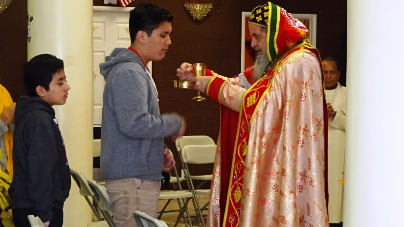 El sábado 18 por la tarde, Mor Santiago Eduardo llegó hasta la sede de la comunidad de El Pescador, en el sur de Los Ángeles, para celebrar la Divina Liturgia.