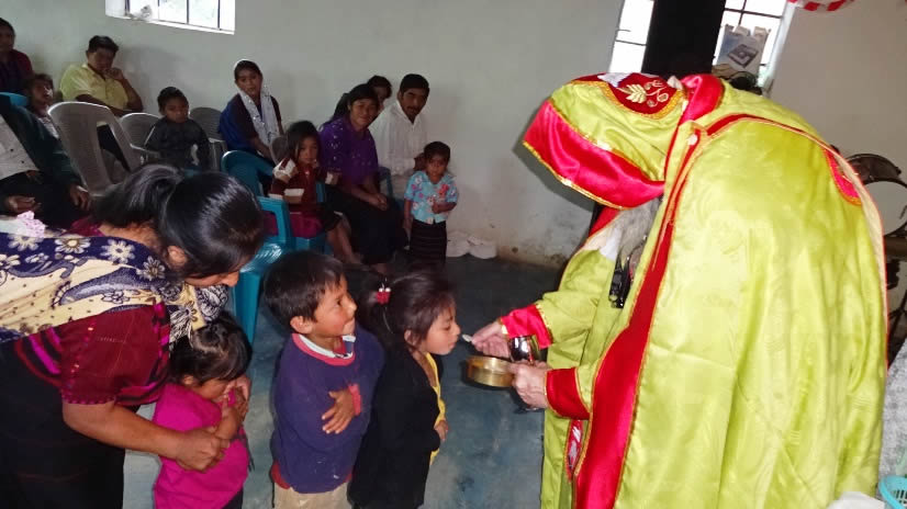 Al caer el día del domingo 26, Mor Santiago Eduardo llegó hasta la comunidad de Mapá, del Centro Pastoral de San Sebastián Huehuetenango.
