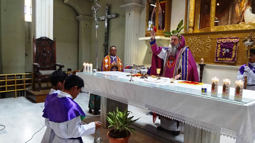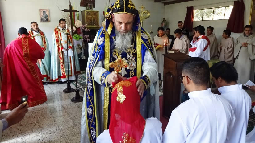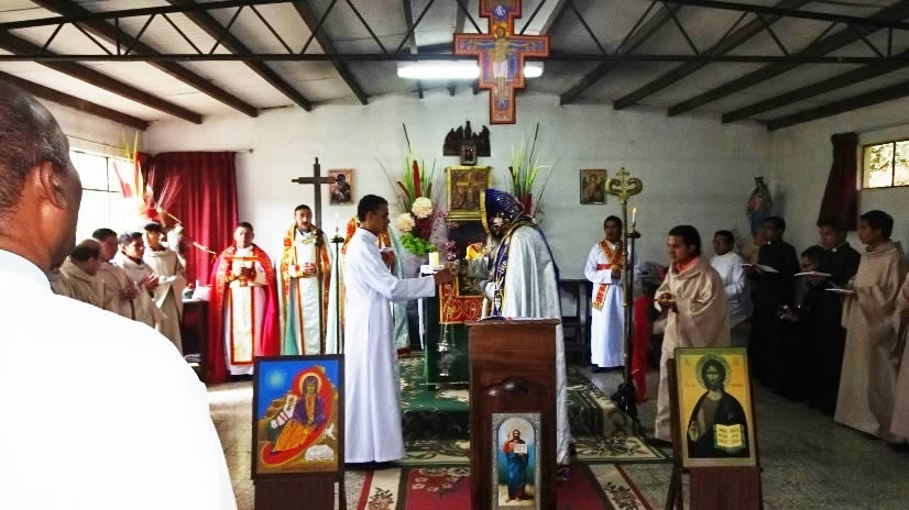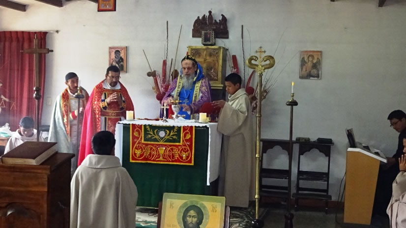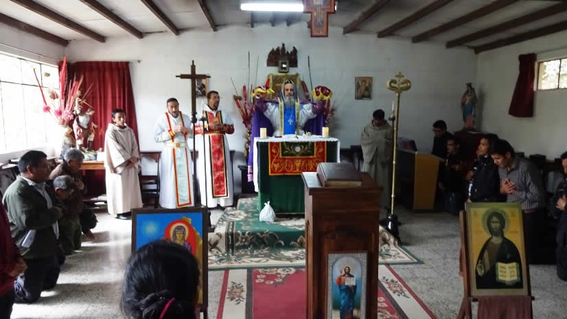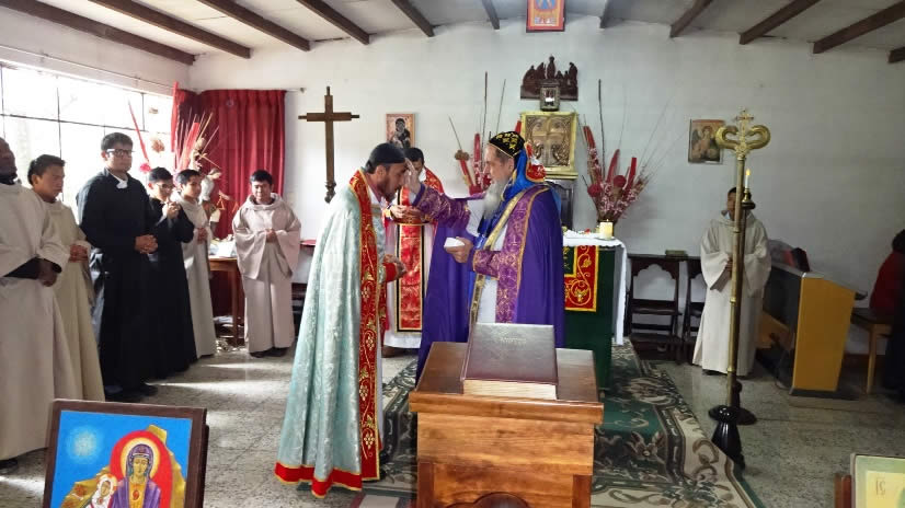 Al medio día Mor Santiago Eduardo presidió la Divina Liturgia en el Seminario Santa María del Nuevo Éxodo, en la que se impuso la ceniza, resultante de los ramos que fueron quemados el día de la Presentación del Señor o Candelaria y los cuales provenían de las ramas con las que se recordó el Domingo de Ramos del año pasado 2016, la entrada triunfal de Jesucristo a Jerusalén.