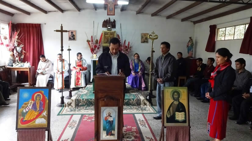 El Padre Fredy González, encargado pastoral de la zona recibió a la comitiva y después de entregar la placa conmemorativa y un icono de Santiago Baradeo a quien está dedicado el templo, se celebró la Divina Liturgia.