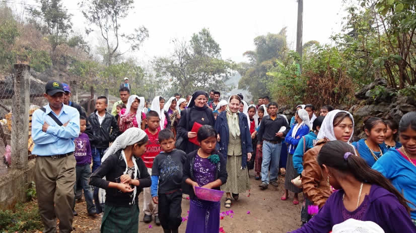 El sábado once por la tarde, el arzobispo acompañado por las hermanas Hatune Dogan y Lucía, visitó la comunidad de Los Guates en San Juan sacatepéquez, Guatemala.