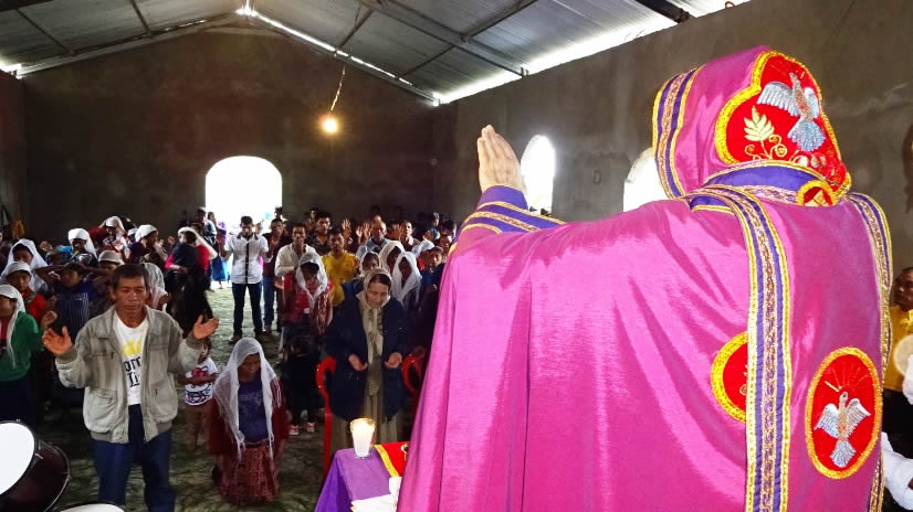 El viernes 10 por la mañana, después de un largo viaje por caminos en condiciones muy difíciles, el arzobispo, acompañado por el Padre Fredy González y por las hermanas Hatune Dogan y Lucía, así como el diácono José Bailiner, llegó hasta el centro pastoral de Sesalché, que hace parte de la parroquia de Jesús el Buen Pastor.