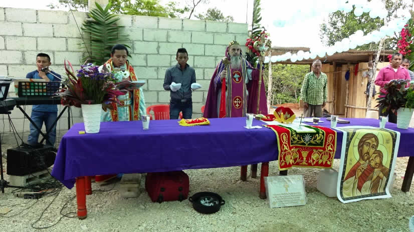 14: DIVINA LITURGIA EN EL CENTRO PASTORAL SAN JUAN EVANGELISTA, AGUA TINTA, MARGARITAS, CHIAPAS, MÉXICO. |