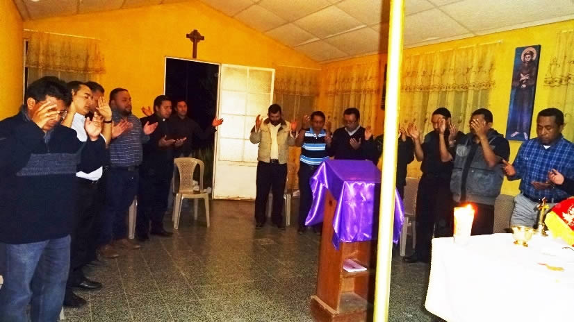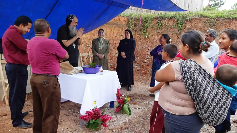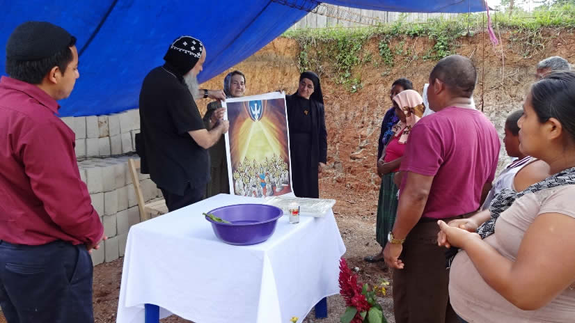 Se oró para pedir la bendición del Señor sobre el templo que se está construyendo y para implorar que cada uno de los miembros de la comunidad, no solamente persevere en la fe, sino también de testimonio de la misma a todos los que aún no han renovado su vida.
