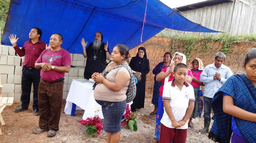 La comunidad local está recibiendo una ayuda para la construcción de su templo, por lo que la hermana Hatune hizo entrega de la placa conmemorativa y de un icono de Pentecostés.