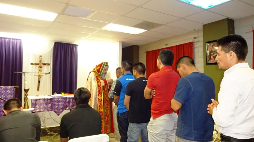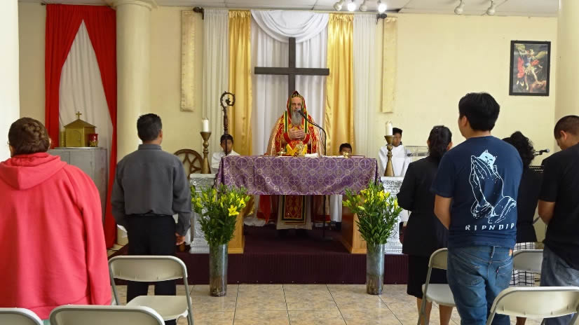 El domingo diecinueve por la noche, el arzobispo celebró la Divina Liturgia con los hermanos de la Comunidad de Nuestra Señora de Guadalupe de Riverside.