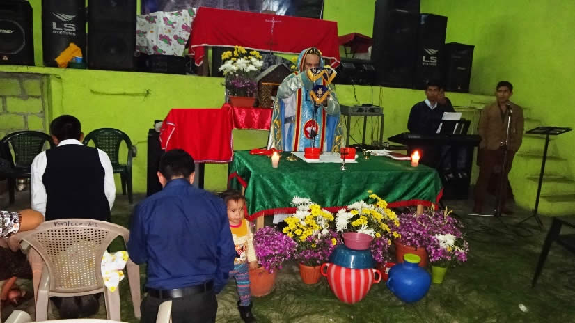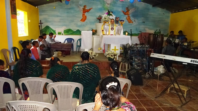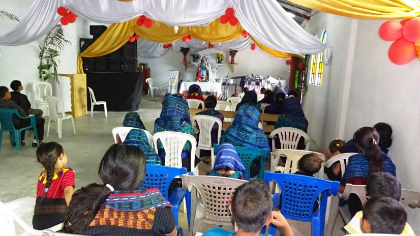 El domingo cuatro por la tarde, el arzobispo llegó a visitar la comunidad de Los Guates, de San Juan Sacatepéquez, la cual se sigue reuniendo en su antiguo espacio, mientras logra avanzar un poco más en la construcción de su templo.
