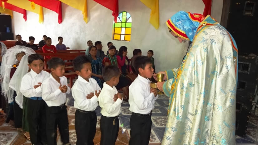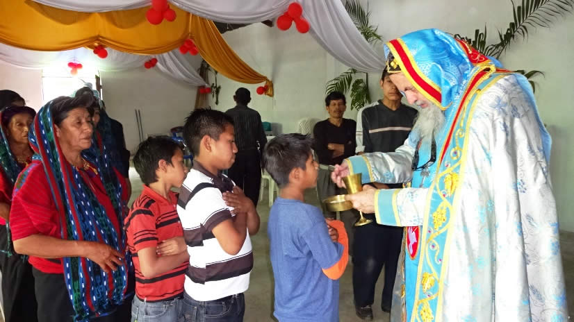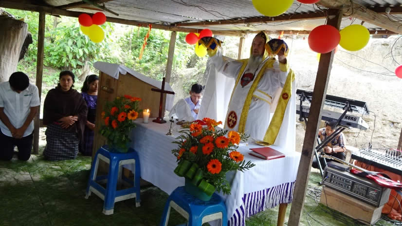 La actividad pastoral del arzobispo concluyó en la comunidad de las Palmas, de San Juan Sacatepéquez, en donde presidió la celebración de la Divina Liturgia.