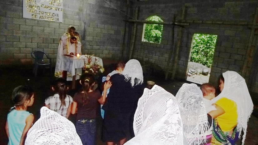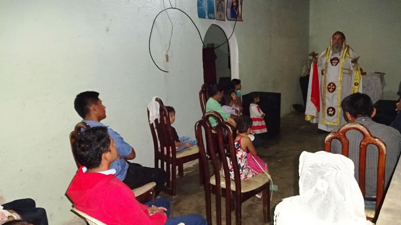 El viernes, al caer el día, el arzobispo llegó hasta la comunidad central de Concepción Huista, para celebrar la Divina Liturgia y reunirse con los miembros de la comunidad.