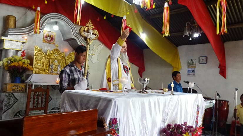 El sábado 17 por la noche, el arzobispo regresó a la comunidad de Nahualate, para presidir la celebración de la Divina Liturgia, como inicio de una vigilia que celebraba la comunidad.