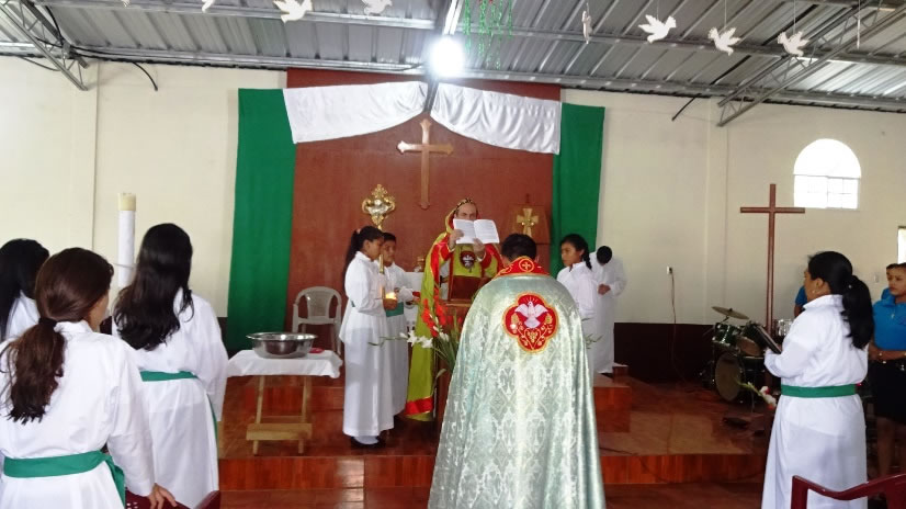 El domingo 25, después de medio día, en el templo en construcción de la comunidad de Guaymando, Ahuachapán, El Salvador, el arzobispo celebró la ordenación como acólito del hermano Selvin Escobar.