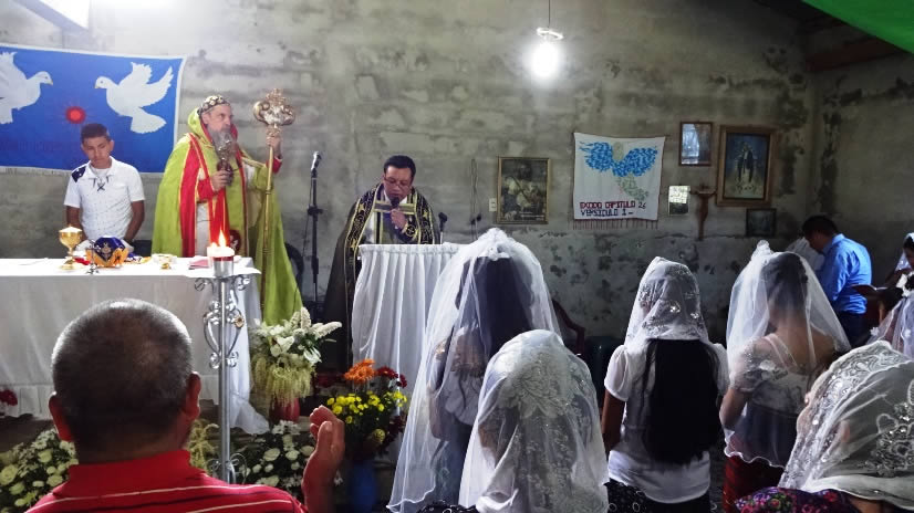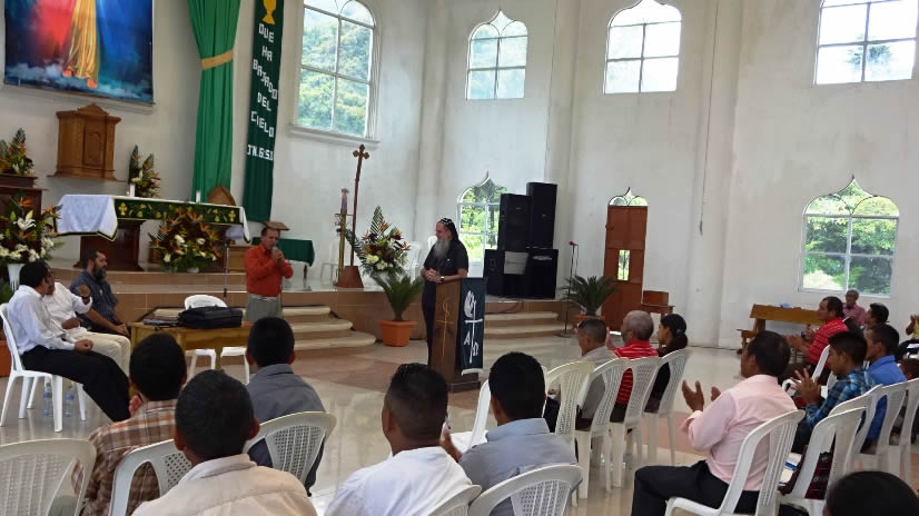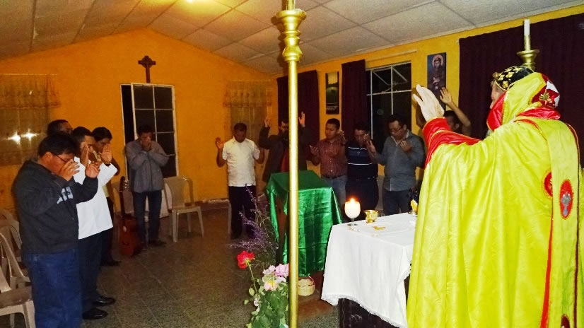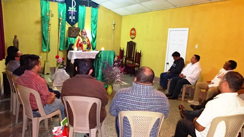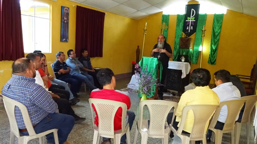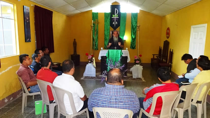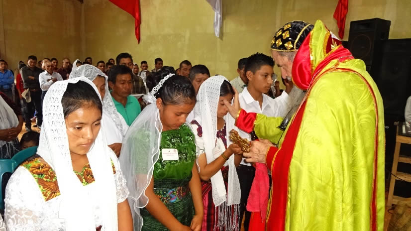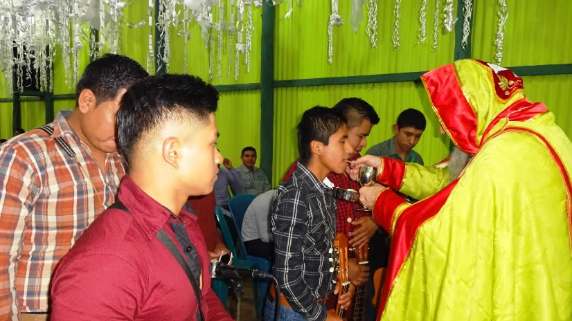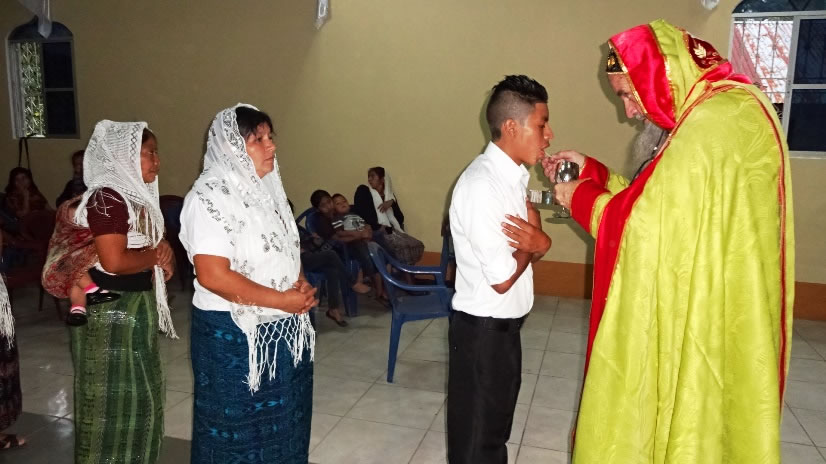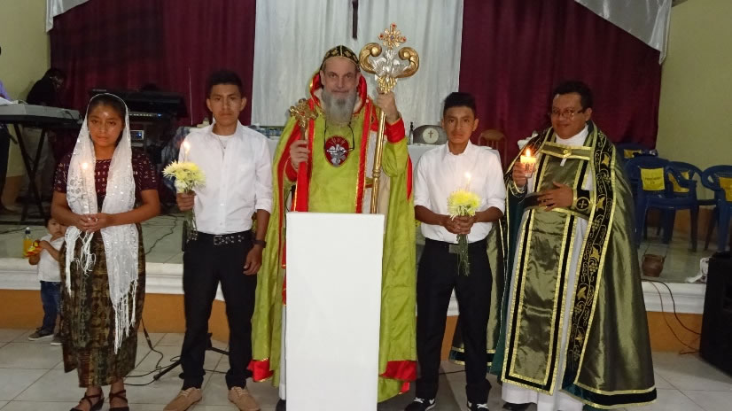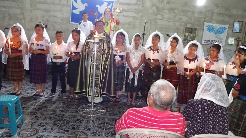 El sábado 29 por la tarde, el arzobispo llegó hasta la comunidad de Manantial Carretera, acompañado por el Padre Hugo Patzán, para presidir la celebración de la Divina Liturgia y para administrar la confirmación y el envío misionero a numerosos hermanos, que habían sido preparados.