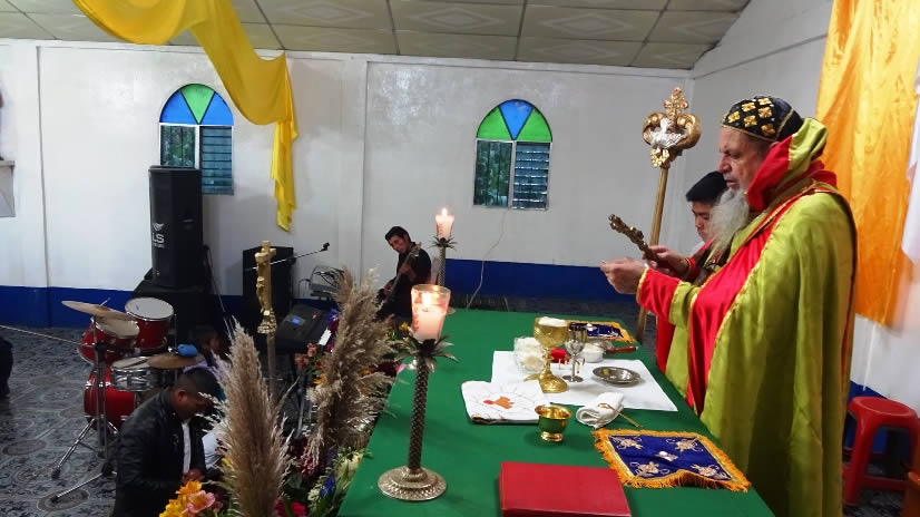 Después de la bendición del templo, el arzobispo presidió la celebración de la Divina Liturgia con los hermanos del Cantón B Las Brisas, Santa Cruz Barillas.