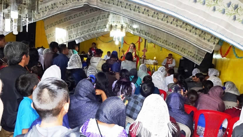 El sábado 28, al caer el día, el arzobispo llegó hasta la remota comunidad de El Recuerdo, de Margaritas, Chiapas, para celebrar la liturgia con los miembros de la comunidad local.