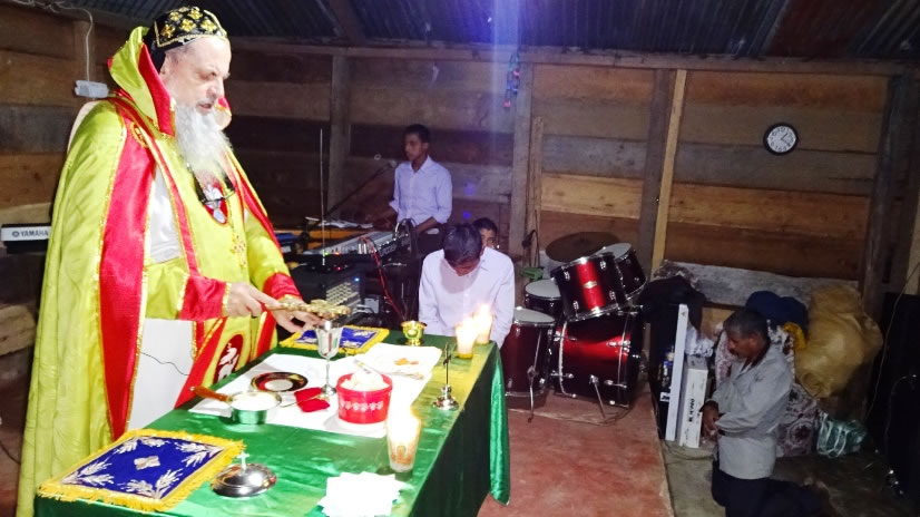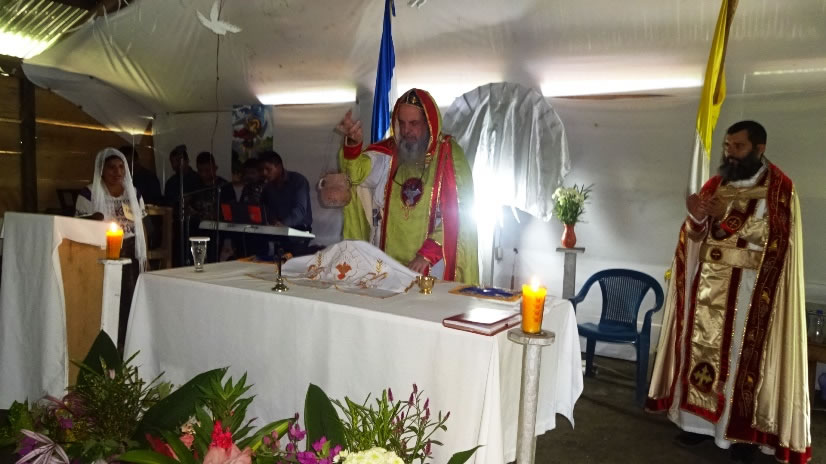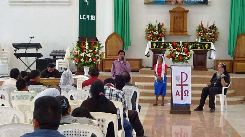 Los hermanos le recibieron con gran alegría y luego le acompañaron hasta la cima de un cerro en donde está construido el templo provisional y esperan iniciar pronto la construcción del templo definitivo en el mismo lugar.