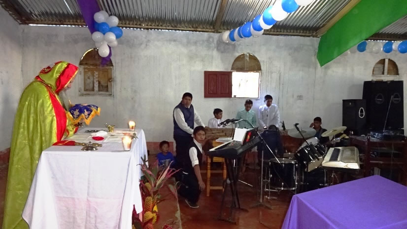 La celebración se llevó a cabo en una galera provisional, pues en la parte posterior, los hermanos están terminando la reconstrucción y ampliación del templo, el cual esperan tenerlo en uso, aunque sea con la parte fundamental, para diciembre.
