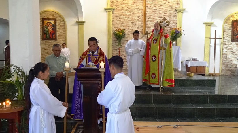A medio día del 9, el arzobispo presidió la Divina Liturgia con los servidores y algunos fieles de la parroquia de Cuilco.