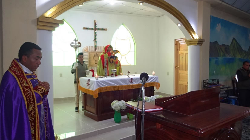 El primero de noviembre, hacia el medio día, el arzobispo presidió la celebración de la liturgia con los hermanos de la comunidad de Ocanté, San Mateo Ixtatán.