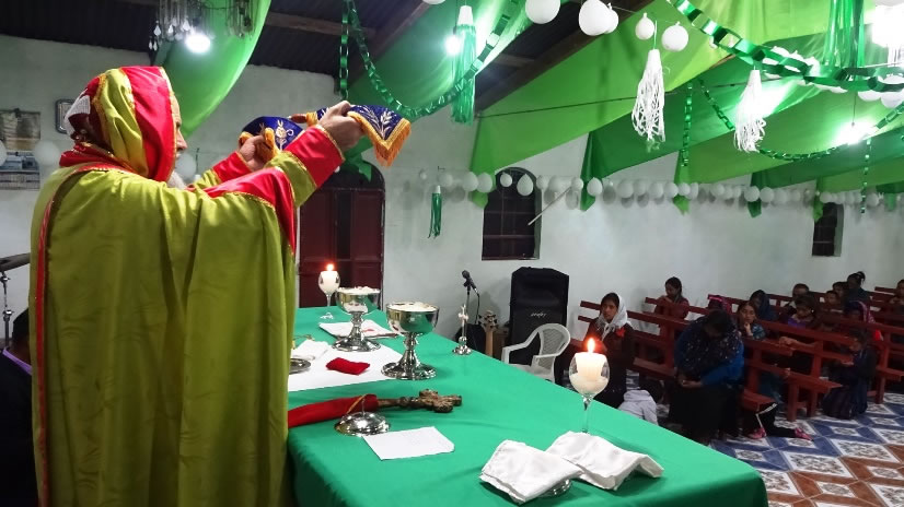 El lunes 6, Mor Santiago Eduardo, acompañado por el Padre Paulino Bizarro, llegó hasta la sede parroquial provisional de Chel, Chajul, para la celebración del decanato del Norte de Chajul.
