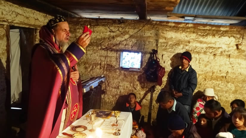 Luego el arzobispo presidió la celebración de la Liturgia en la casa de oración provisional que tienen los hermanos.