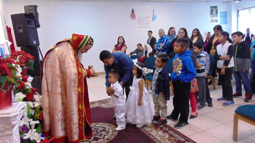 Con ocasión de la visita, además de la celebración de la Divina Liturgia, se administraron los sacramentos de la Iniciación Cristiana a dos niños.