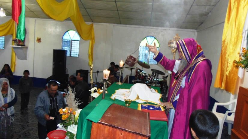 El trece, después del mediodía, el arzobispo presidió la celebración de la Divina Liturgia en la sede provisional de la parroquia de Santa Eulalia, Huehuetenango.