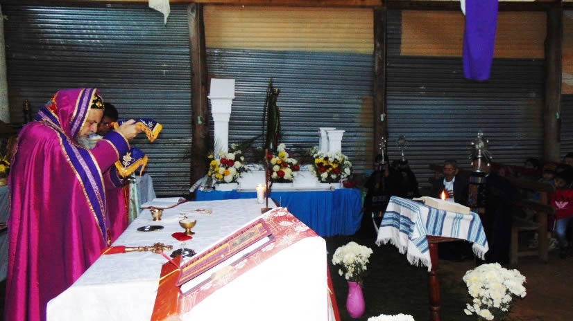 Mor Santiago Eduardo celebró la divina liturgia con los hermanos de la comunidad de Nahuizalco, Sonsonate, El Salvador, acompañado por el Padre Juan Moisés Mendoza, responsable pastoral de la misión.