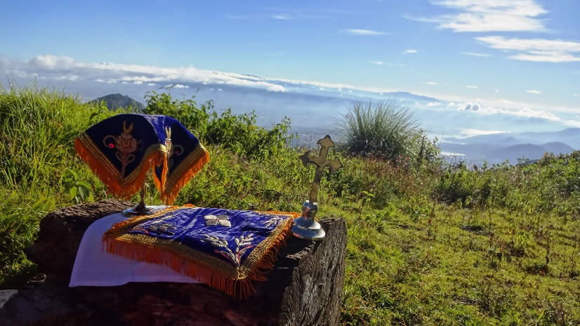 Habiendo salido de madrugada, desde la Hacienda Carmona, acompañado por el diácono José Bailiner y el hermano Cristián Rodrigo, después de llegar a la cima, se oró, pidiendo al Señor la bendición por toda la Arquidiócesis de Centro América y por toda la Iglesia.