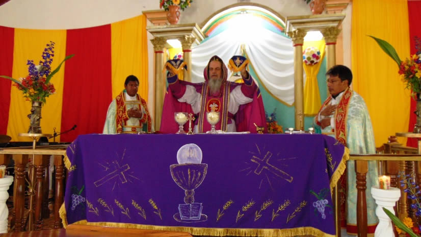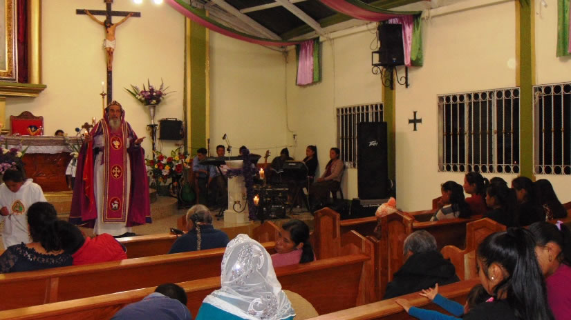 El 29, por la noche, el arzobispo llegó hasta la comunidad de Xolacul para presidir la Divina Liturgia de la Cena del Señor.