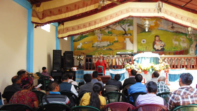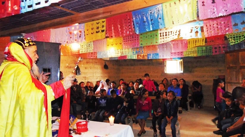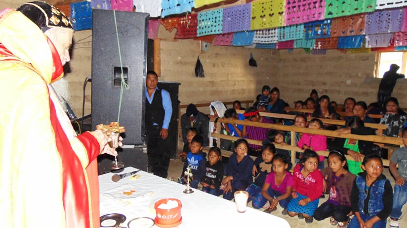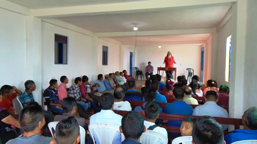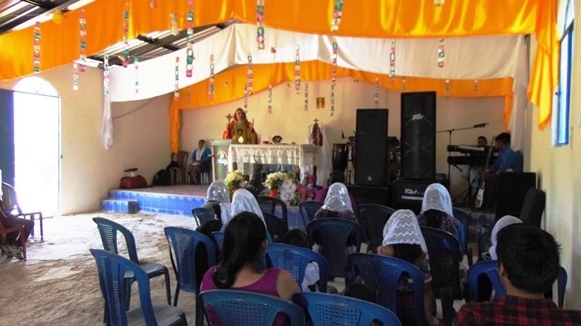 Esta comunidad se caracteriza por su organización y constante crecimiento. En esta ocasión, sin embargo, sólo se encontraba presente menos de la mitad de los fieles. La razón es porque, en este tiempo del año, los hermanos bajan al área cálida, sobre todo a la Democracia, para hacer sus cultivos de milps.
