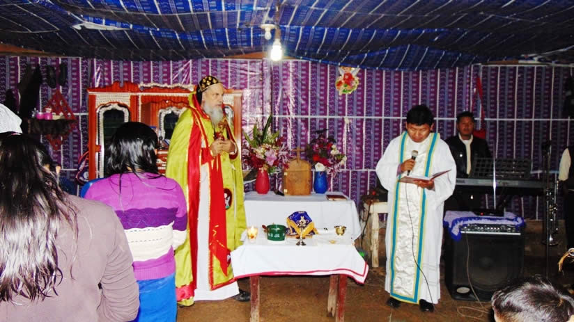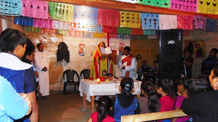 El domingo por la tarde, Mor Santiago Eduardo llegó hasta la comunidad de Chanquejelbé, acompañado de los padres José Alfredo y Francisco.