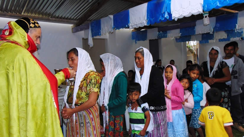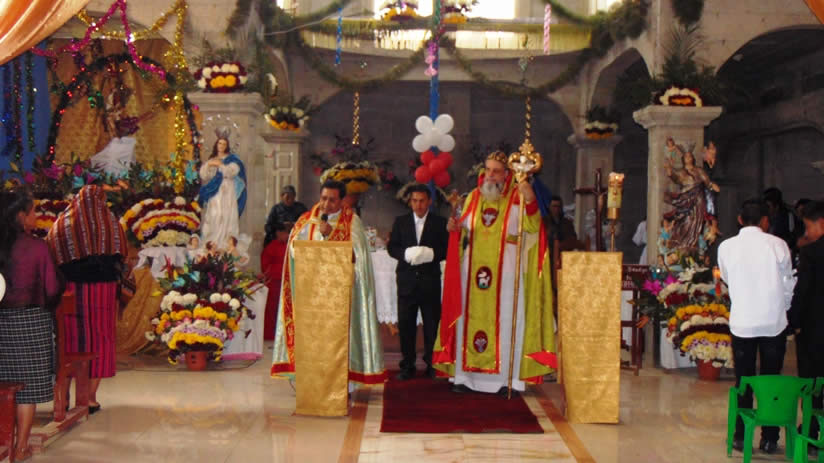 El jueves 4 de octubre, Mor Santiago Eduardo llegó hasta la parroquia de San Miguel Arcángel, de Tzanixnam, Totonicapán. Le recibió el Padre Tomás, párroco local.