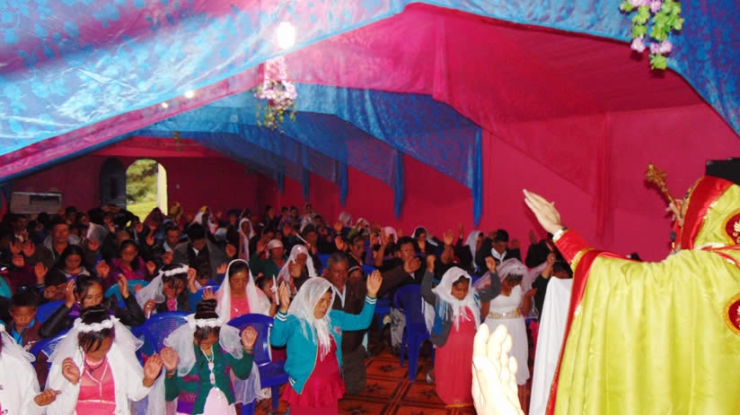 Por primera vez, el arzobispo celebró en la parte central del nuevo templo, después de su construcción, Los hermanos están muy animados y deseosos de seguir consolidando su parroquia, así como de terminar la construcción del templo