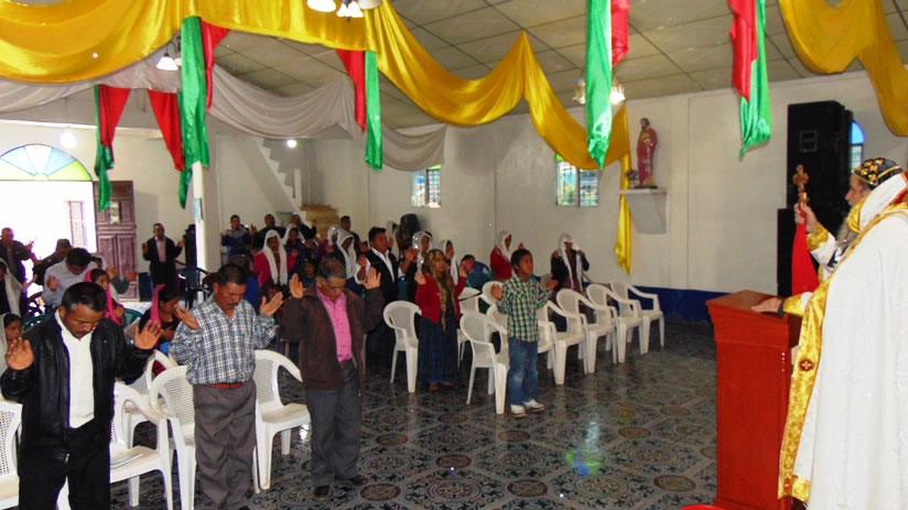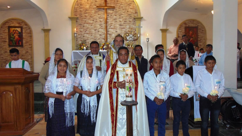 El sábado cinco, por la tarde, Mor Santiago Eduardo presidió la celebración de la divina liturgia en la sede parroquial de la Epifanía, Nucá, Santa Cruz Barillas.