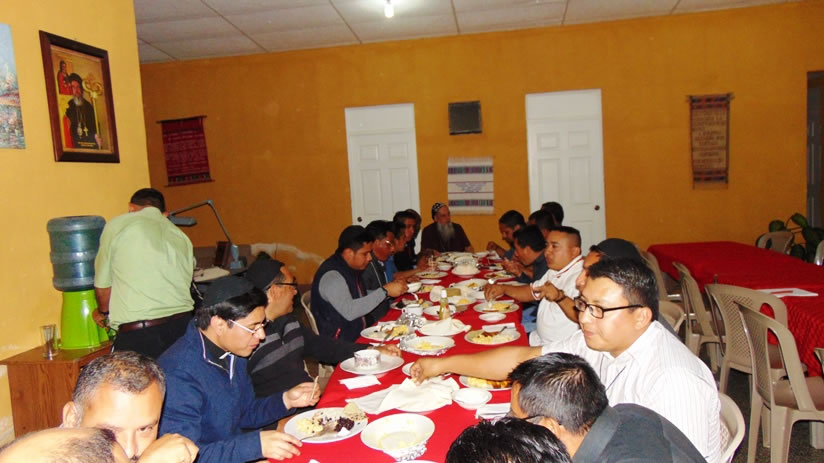 La reunión del presbiterio de la Vicaría de Huehuetenango terminó con el almuerzo y la celebración en honor del sexto aniversario de la Arquidiócesis de Centroamérica en el cumpleaños del arzobispo.