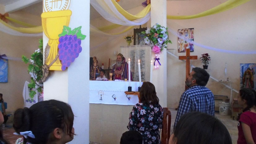 Tuvo un breve encuentro con los líderes de la comunidad y seguidamente celebró la Divina Liturgia, junto con el Padre Tomás Canajay, encargado pastoral de la zona.
