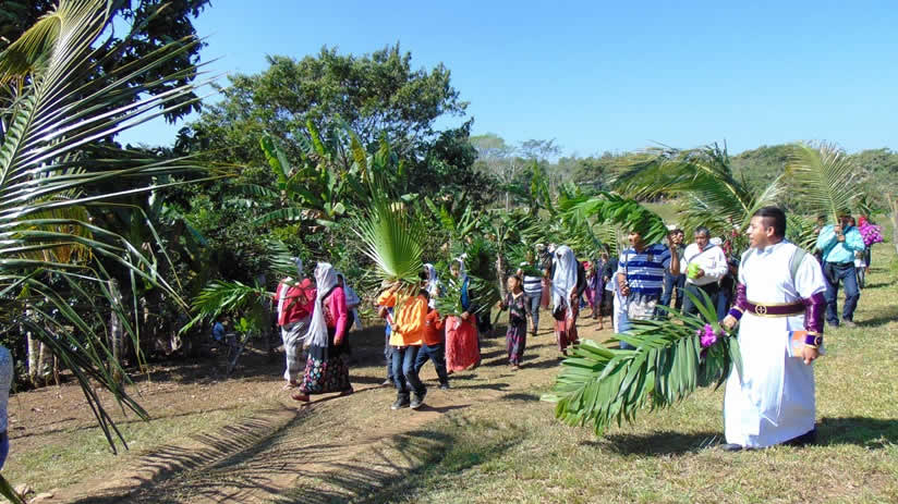 | 13: PROCESIÓN DE RAMOS EN LA PARROQUIA DEL AMPARO AGUA TINTA, MARGARITAS, CHIAPAS, MÉXICO. |