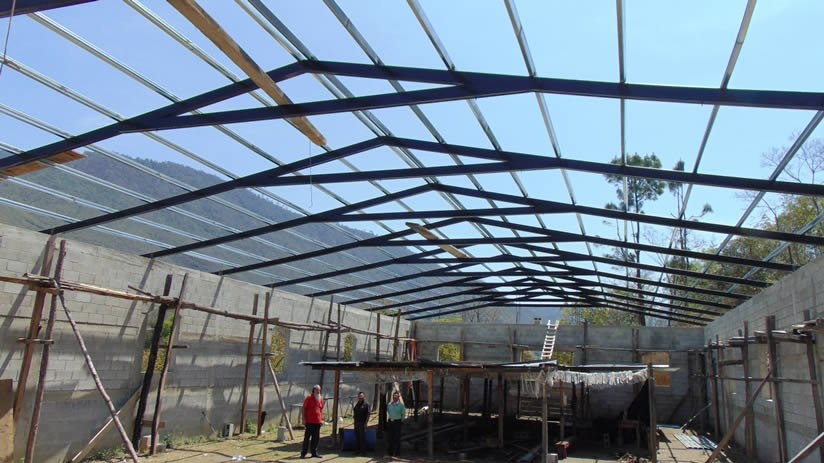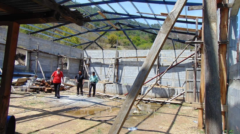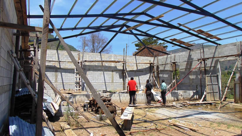 Actualmente, están en proceso de la colocación del techo. Se han instalado las tijeras y está pendiente, actualmente, la colocación de la lámina y el seguimiento del repello y otros detalles, para terminar la obra.