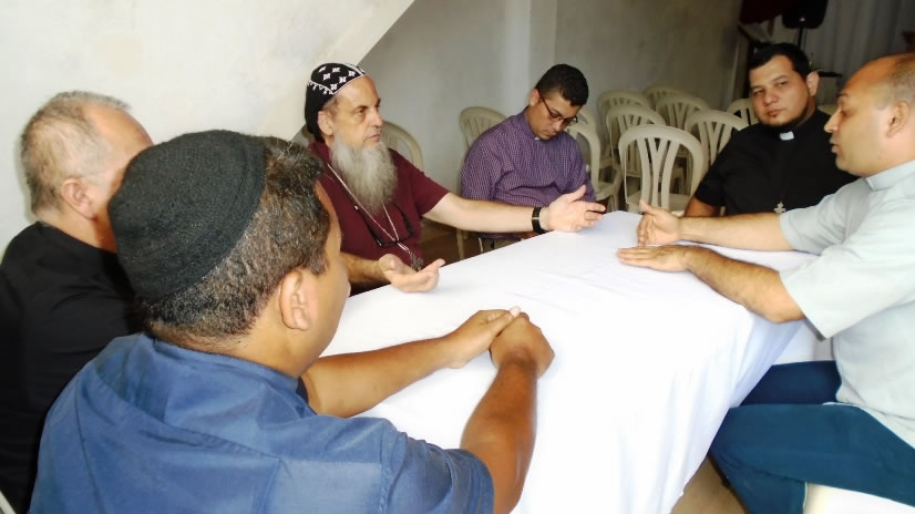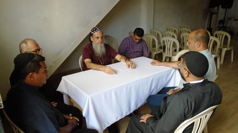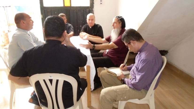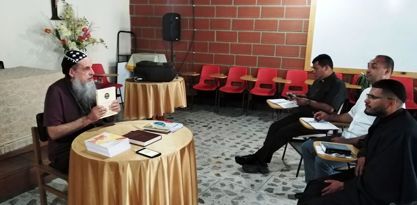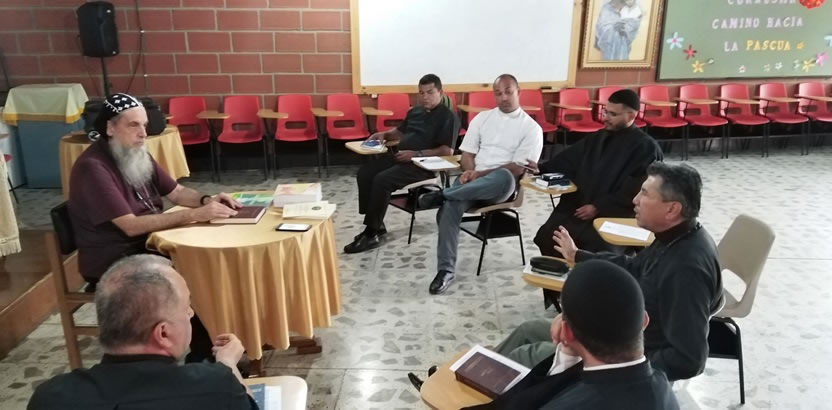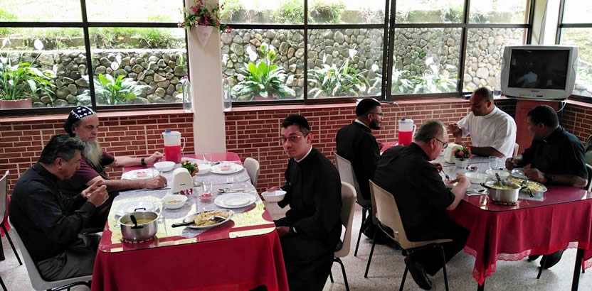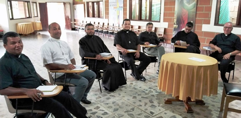 Después de la llegada y de almorzar, el arzobispo tuvo la primera reunión con el presbiterio de la vicaría. Se encontraban presentes seis de los padres, llegados de diferentes lugares de Colombia. Uno de ellos, el Padre Jeinner de Barranquilla, por razones de salud, no pudo estar presente.