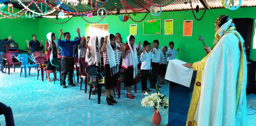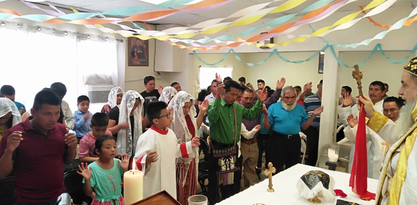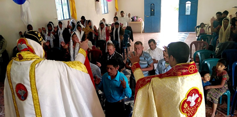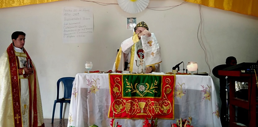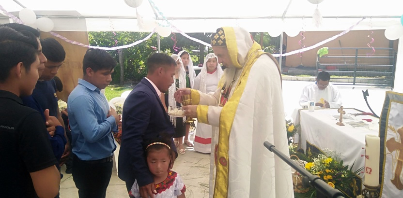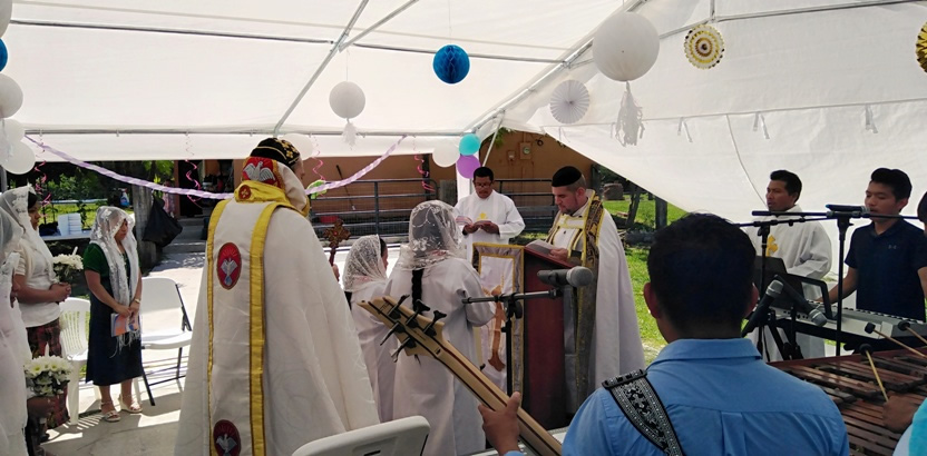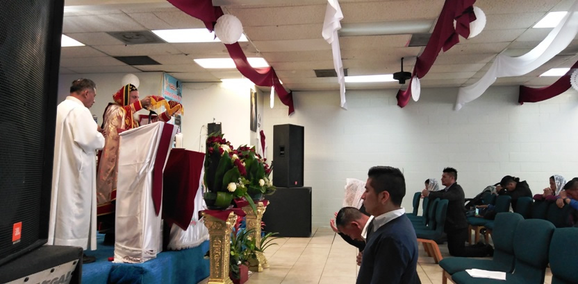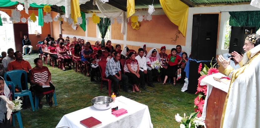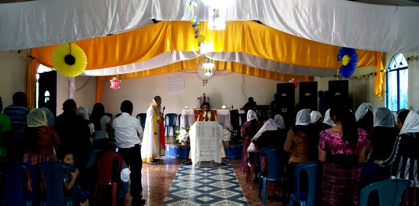 El sábado 25, por la mañana, Mor Santiago Eduardo hasta la comunidad central de Santiago Chimaltenango. Allí, además del pueblo de dios, estaba presente el Padre Pedro Martínez, encargado pastoral del área.
