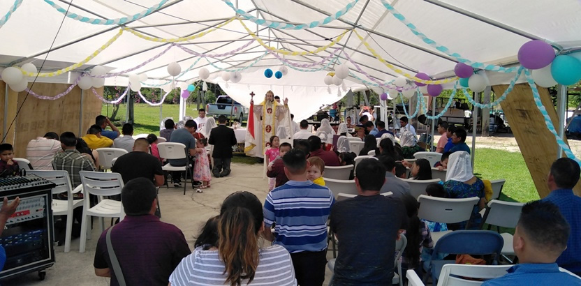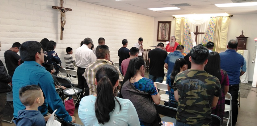 El domingo 19, por la mañana, el arzobispo inició su labor pastoral, visitando las instalaciones que ha logrado adquirir, para tener su sede, la comunidad Poder del Espíritu Santo, de Immokalee, Florida.