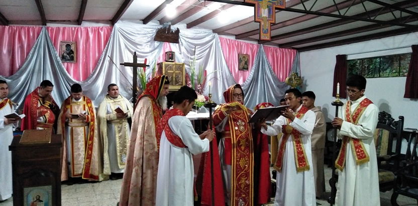 El miércoles por la tarde, cuando se estaba preparando la conclusión del viaje misionero de la delegación de la arquidiócesis del este de los Estados Unidos, presididos por Mor Jean, llegaron al seminario Santa María del Nuevo Éxodo, de San Lucas Sacatepéquez, para celebrar la Divina Liturgia de Santiago.