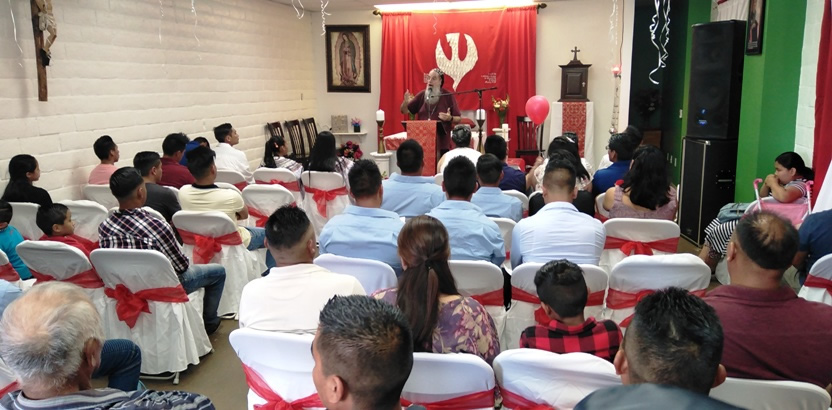 Han alquilado un local y organizado, con todo el entusiasmo, lo necesario para poder tener la iglesia y convertirse, con la ayuda de Dios, en un futuro próximo, en parroquia. |