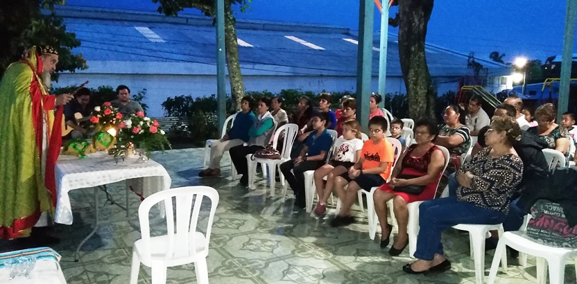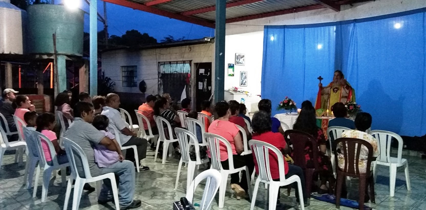 La ubicación estratégica de la comunidad, permitió que se pudiera hacer la celebración. El local en donde está la iglesia se ubica en un Centro Comercial y, en el frente del mismo, hay una área social que está desocupada y se pudo utilizar para hacer el compartir fraterno con los hermanos.