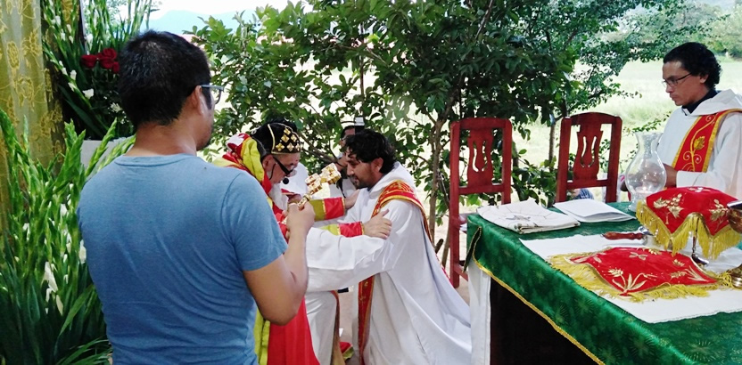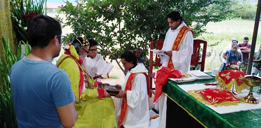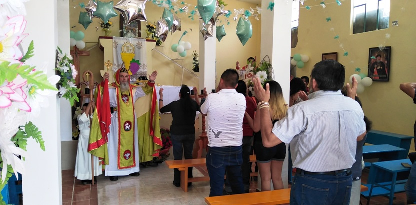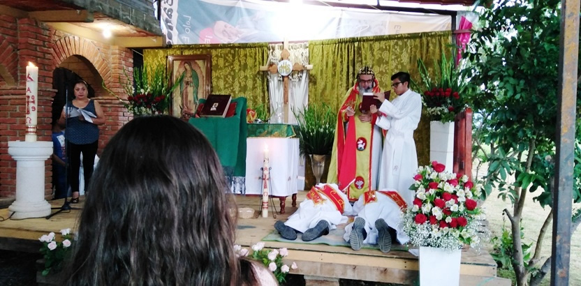 El viernes 23, por la tarde, el arzobispo llegó hasta la sede central de la Misión Santa María de Guadalupe, de Coyotepec, Oaxaca, México, para celebrar la ordenación como diáconos completos, de los sub-diáconos José Juan y Wilber Antonio.