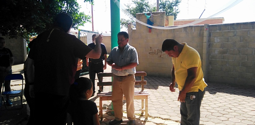 Después de orar y de realizar la bendición del agua, se procedió a rociar a todos los hermanos con el agua bendita, así como al mismo lugar, en donde está la hermanita dedicada a Santa María de Guadalupe.