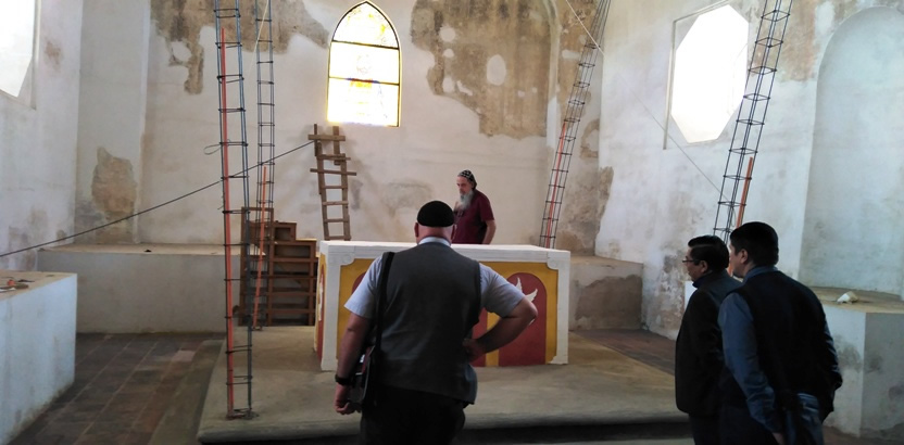 La visita dio inicio con una inspección de los trabajos que se están realizando en la iglesia colonial.